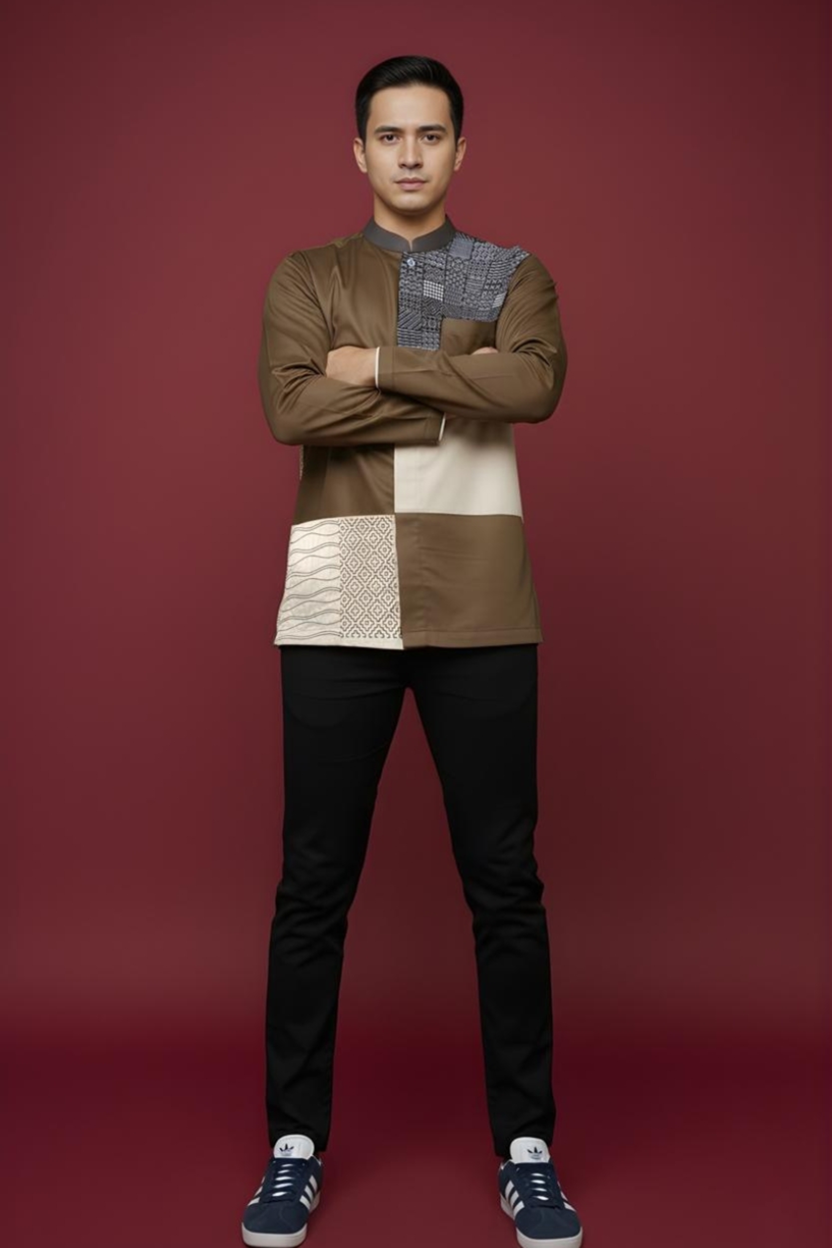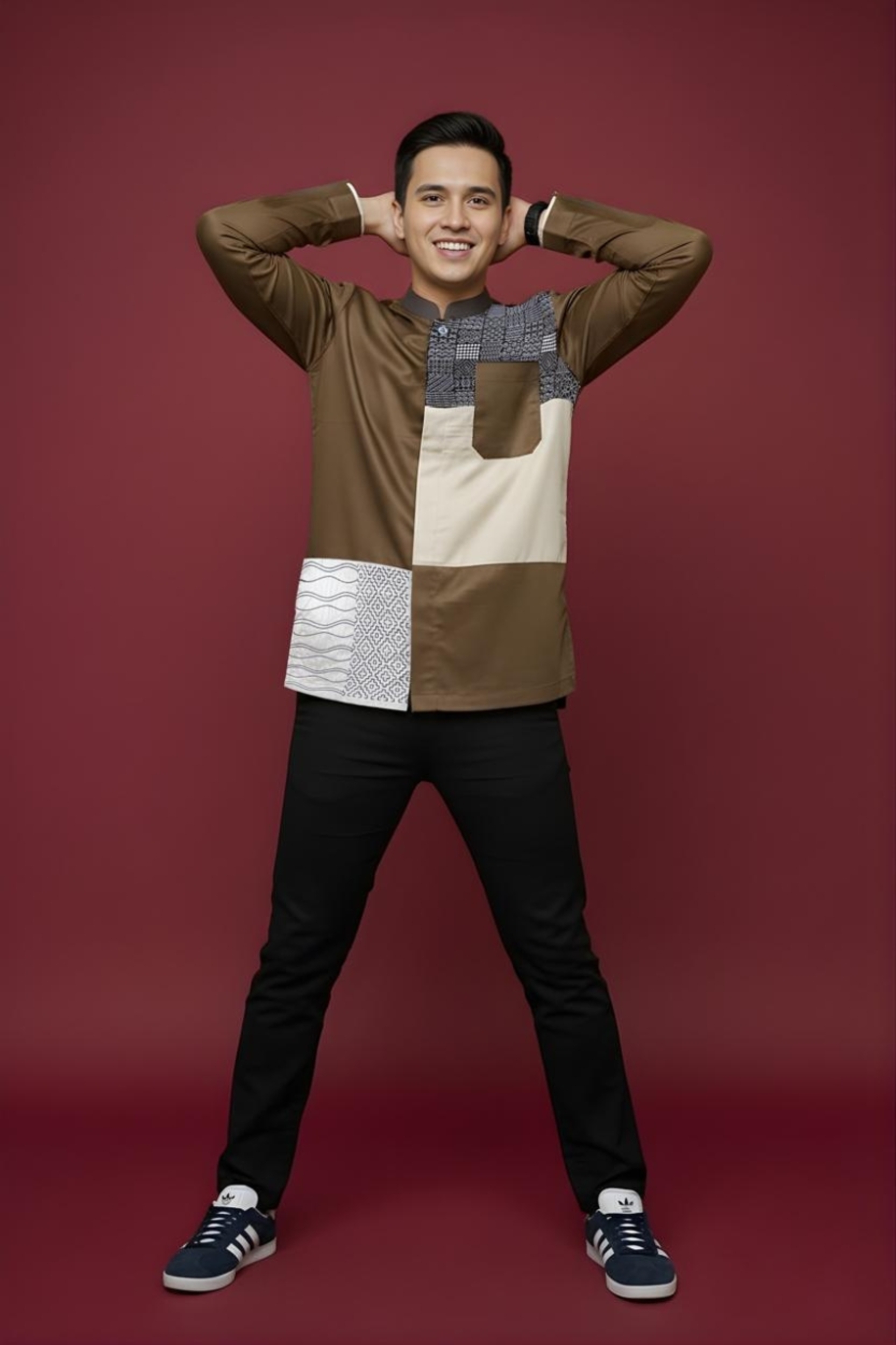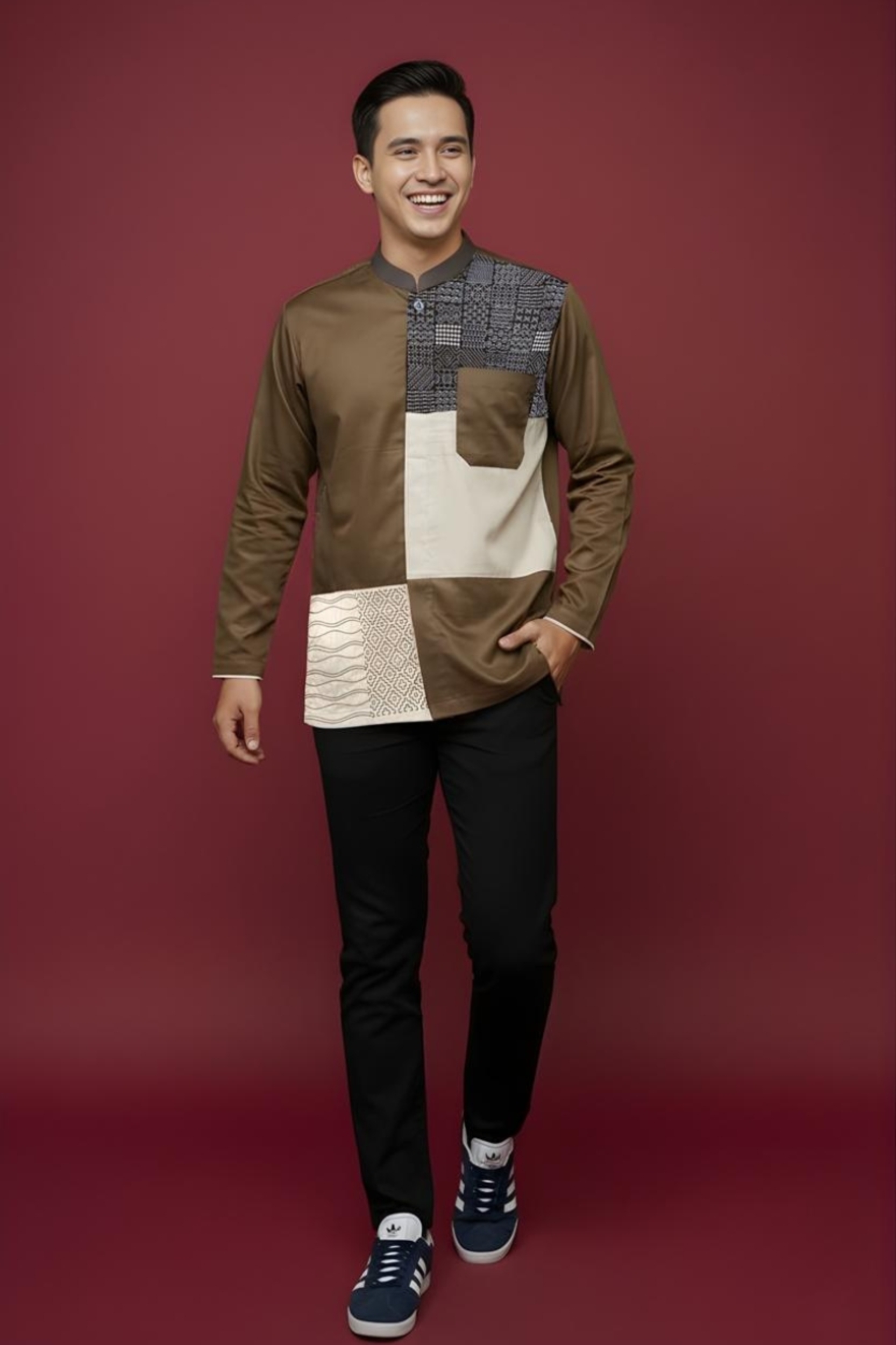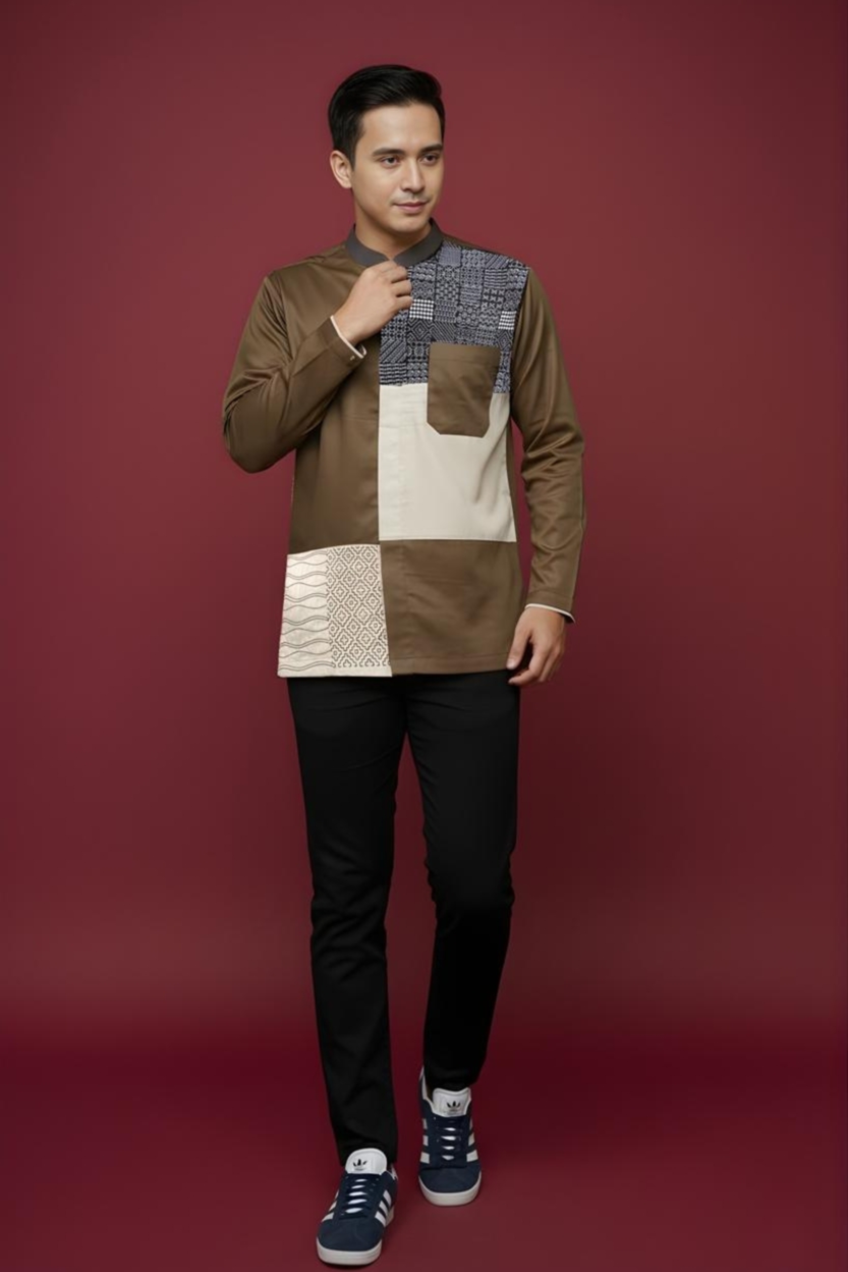 Kerah : * Kerah Mandarin * Kombinasi bahan katun Marocco Coffee pada bagian kerah