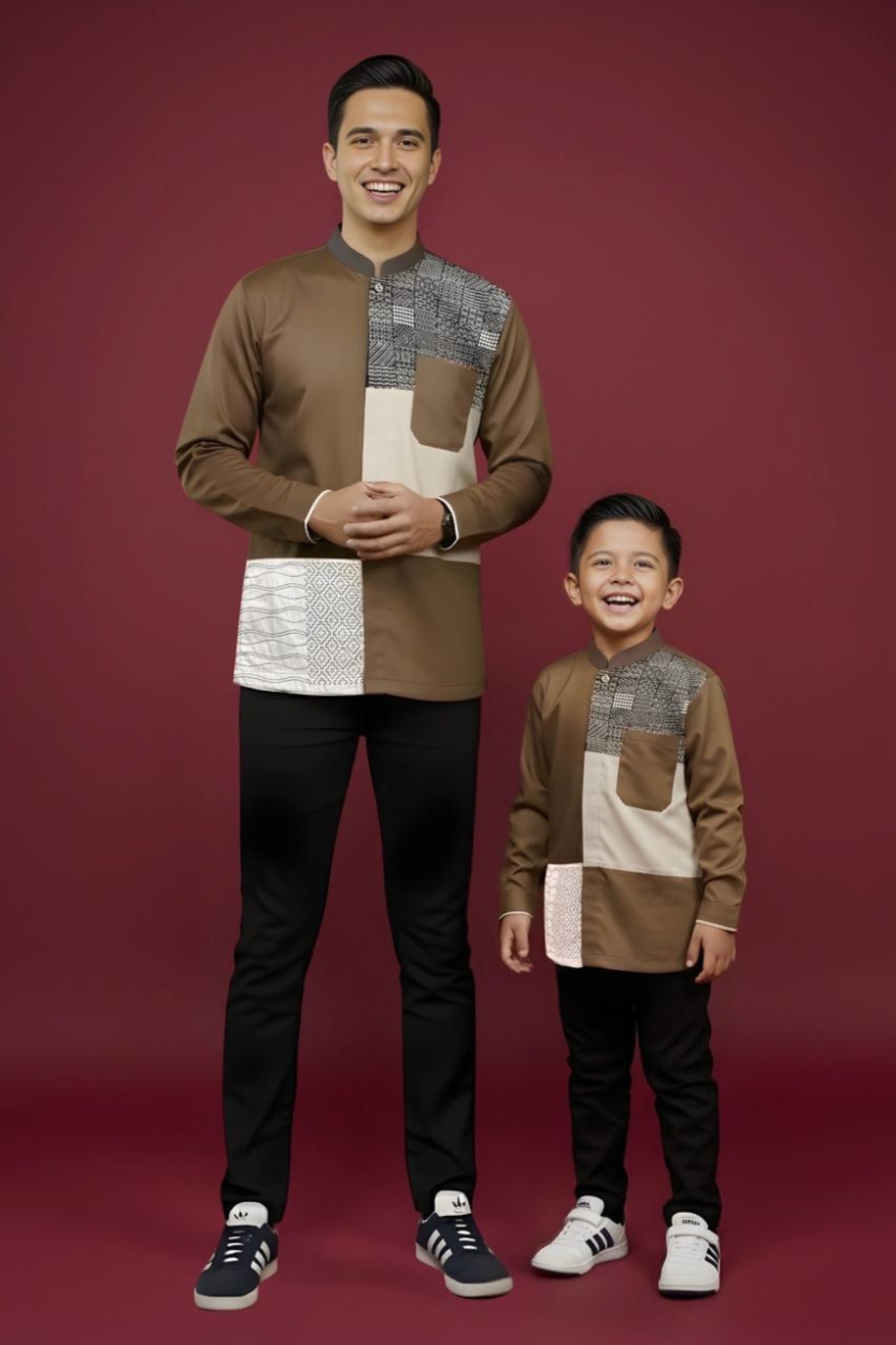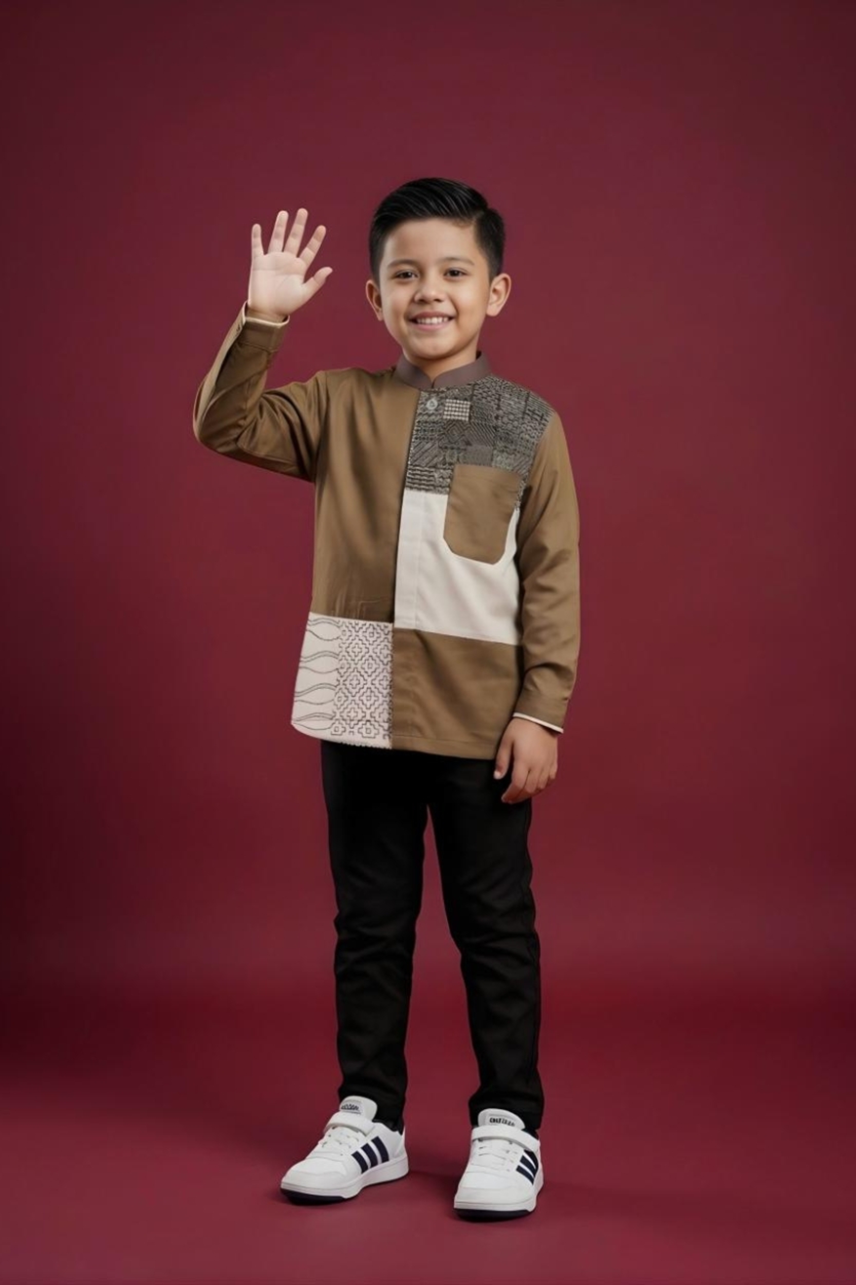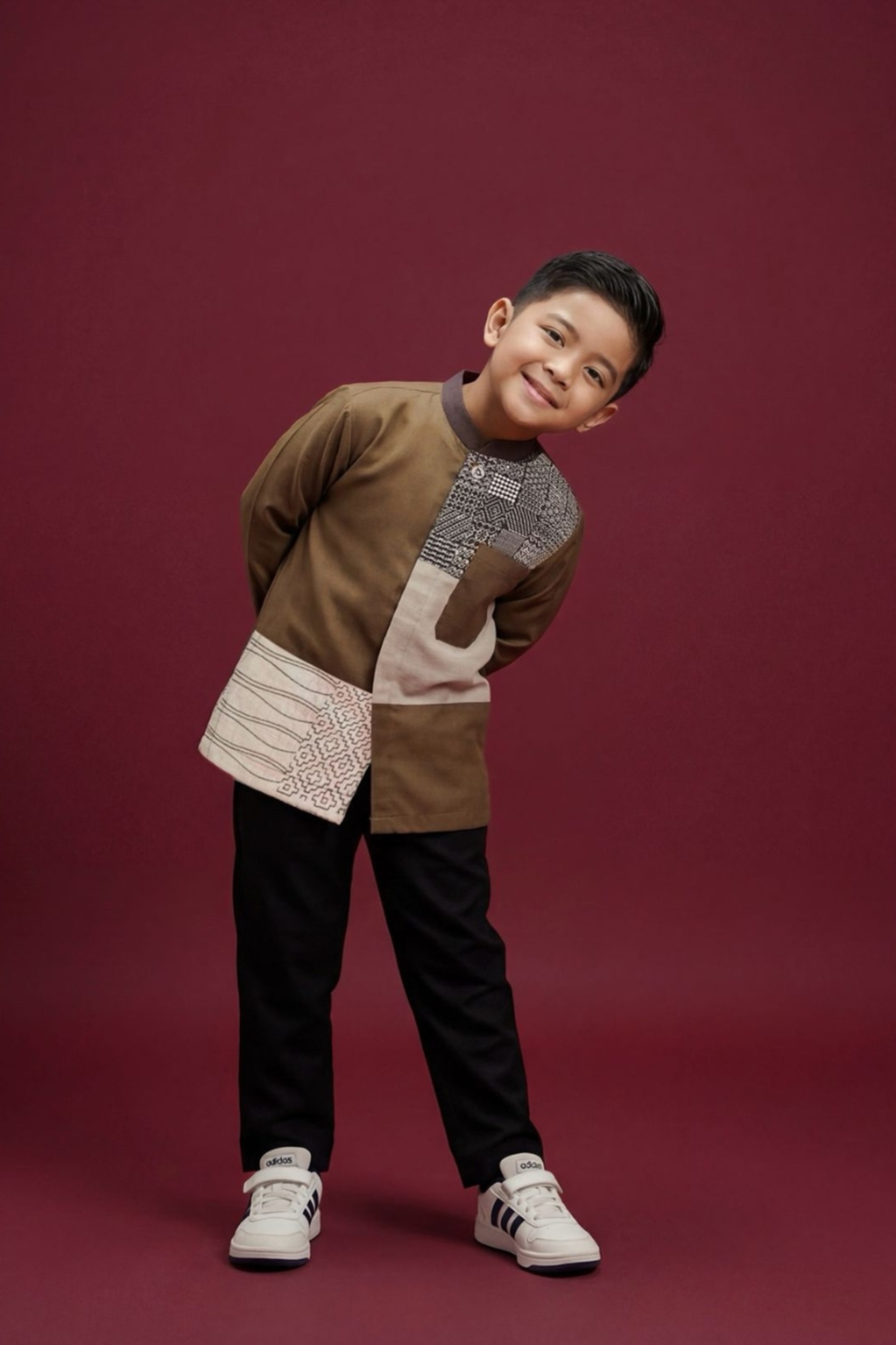 Kerah : * Kerah Mandarin * Kombinasi bahan katun Marocco Coffee pada bagian kerah
