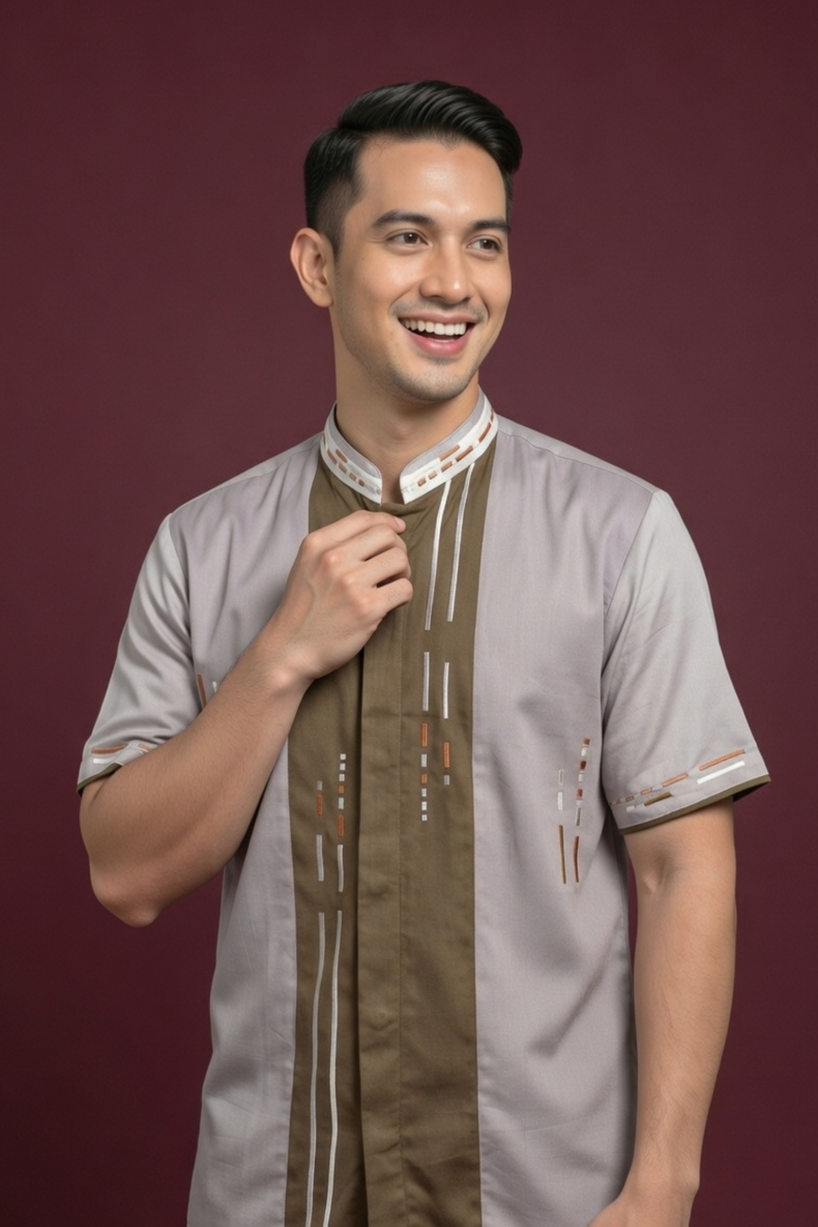 Warna baju : - Depan olive / hijau gelap dan abu-abu - Benang bordir putih, grey, orange bata, dan light grey - Kerah berwarna putih