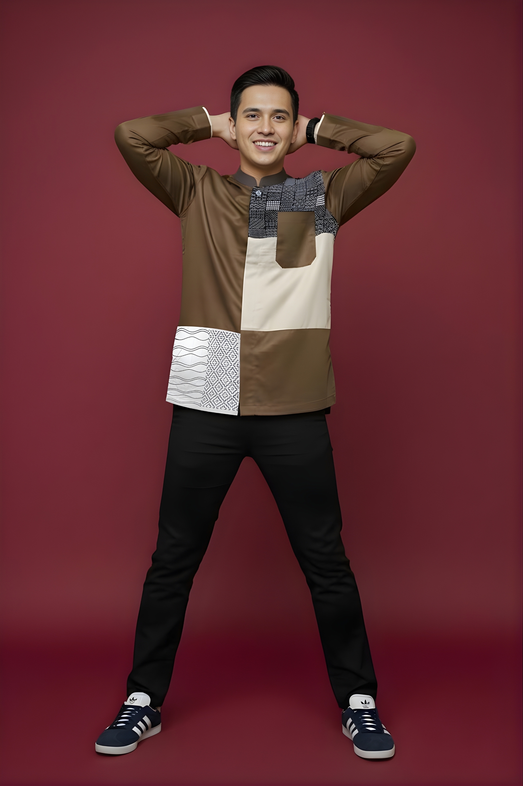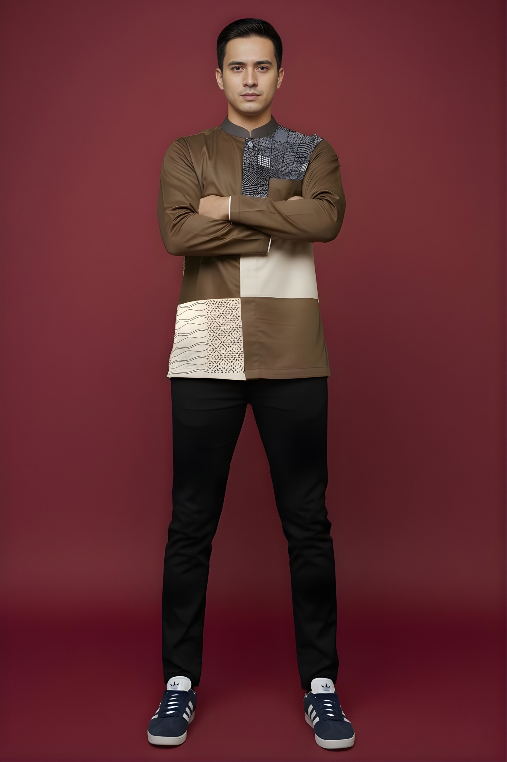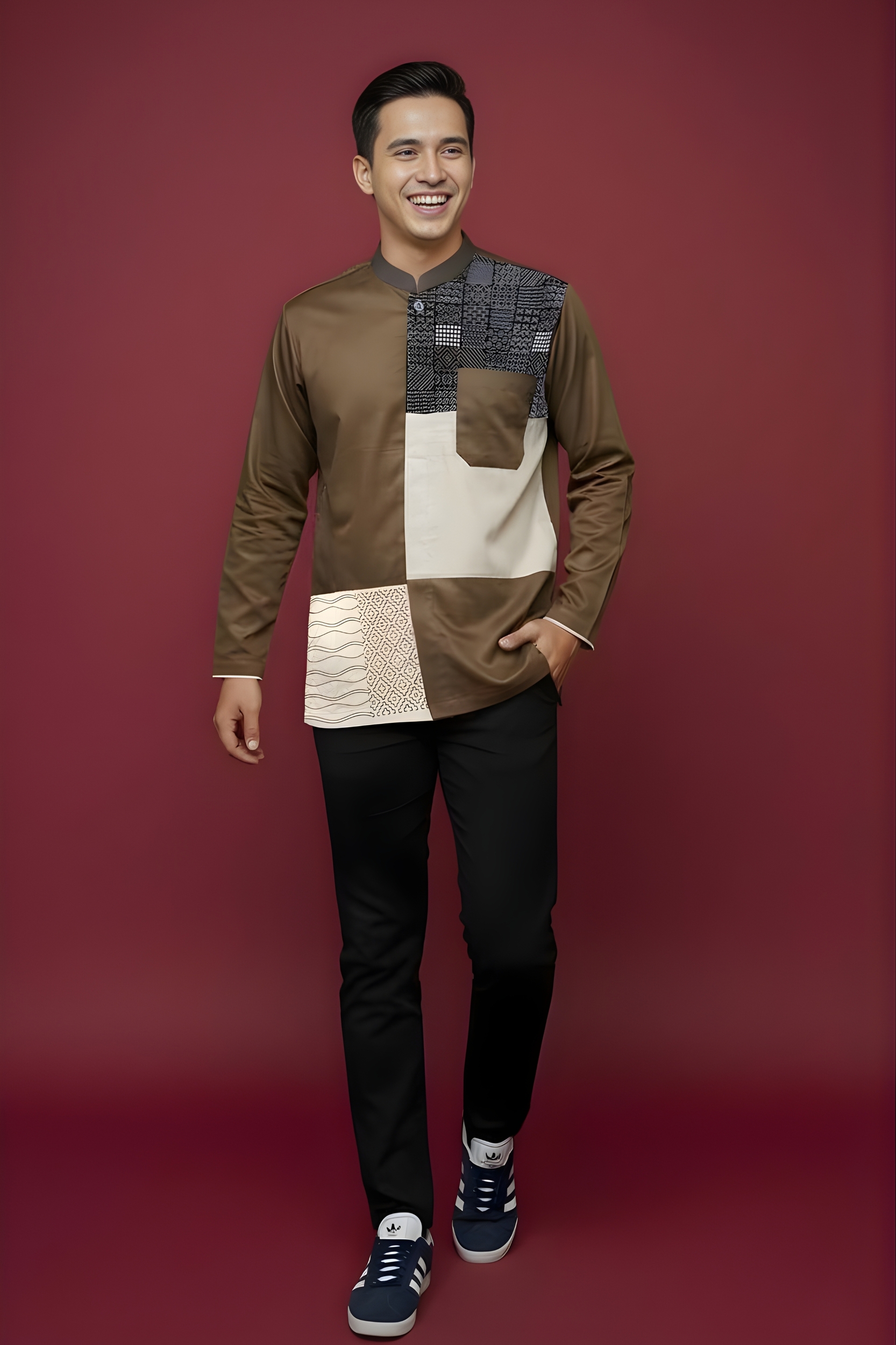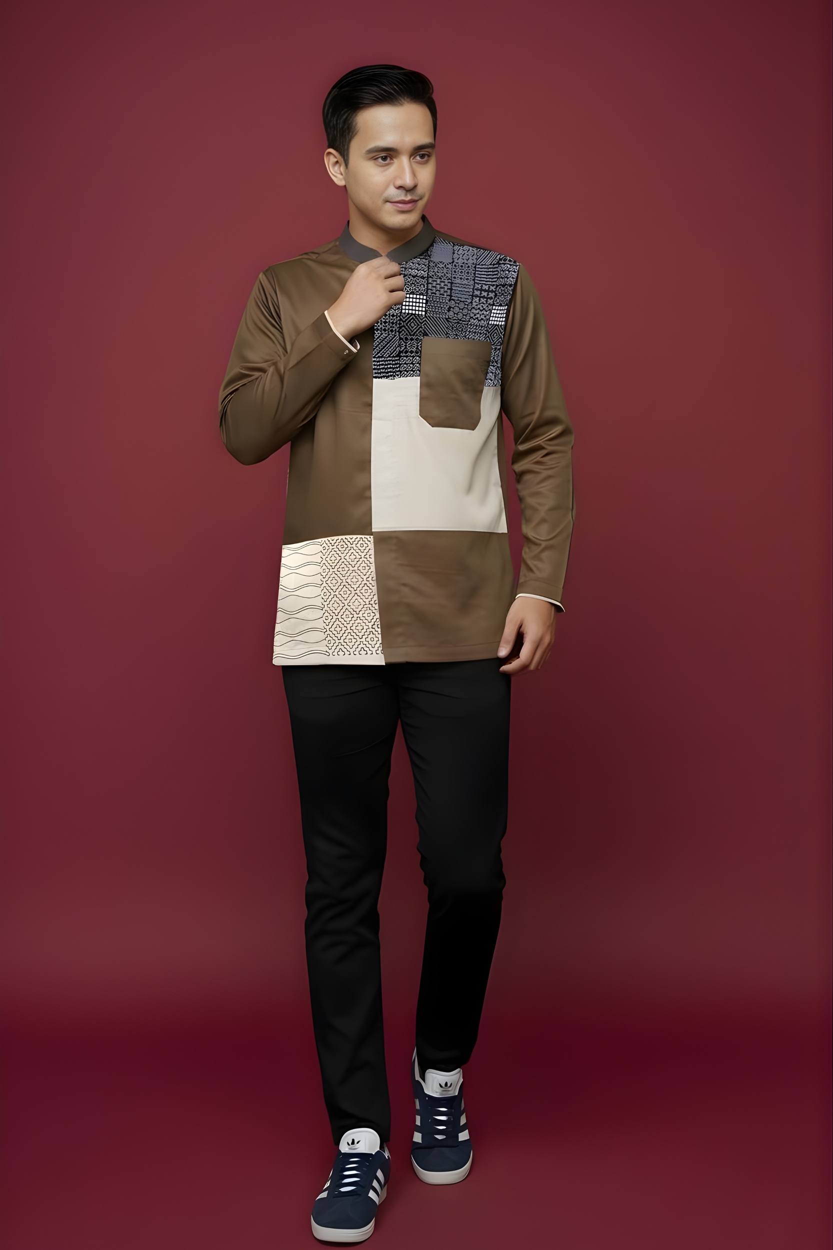 Kerah : * Kerah Mandarin * Kombinasi bahan katun Marocco Coffee pada bagian kerah