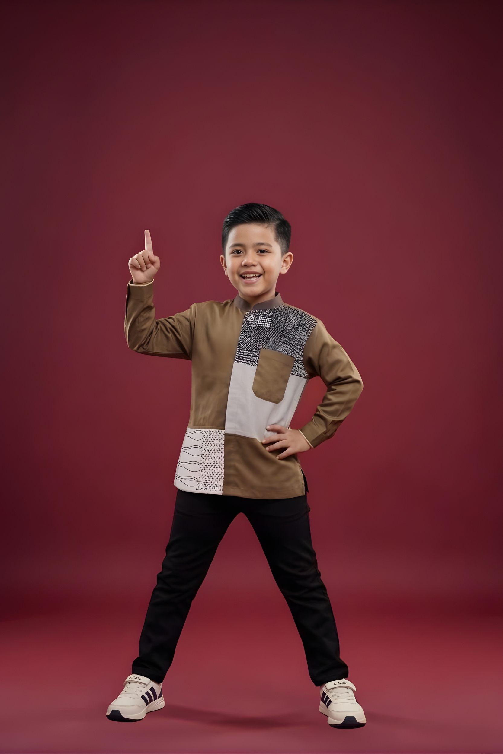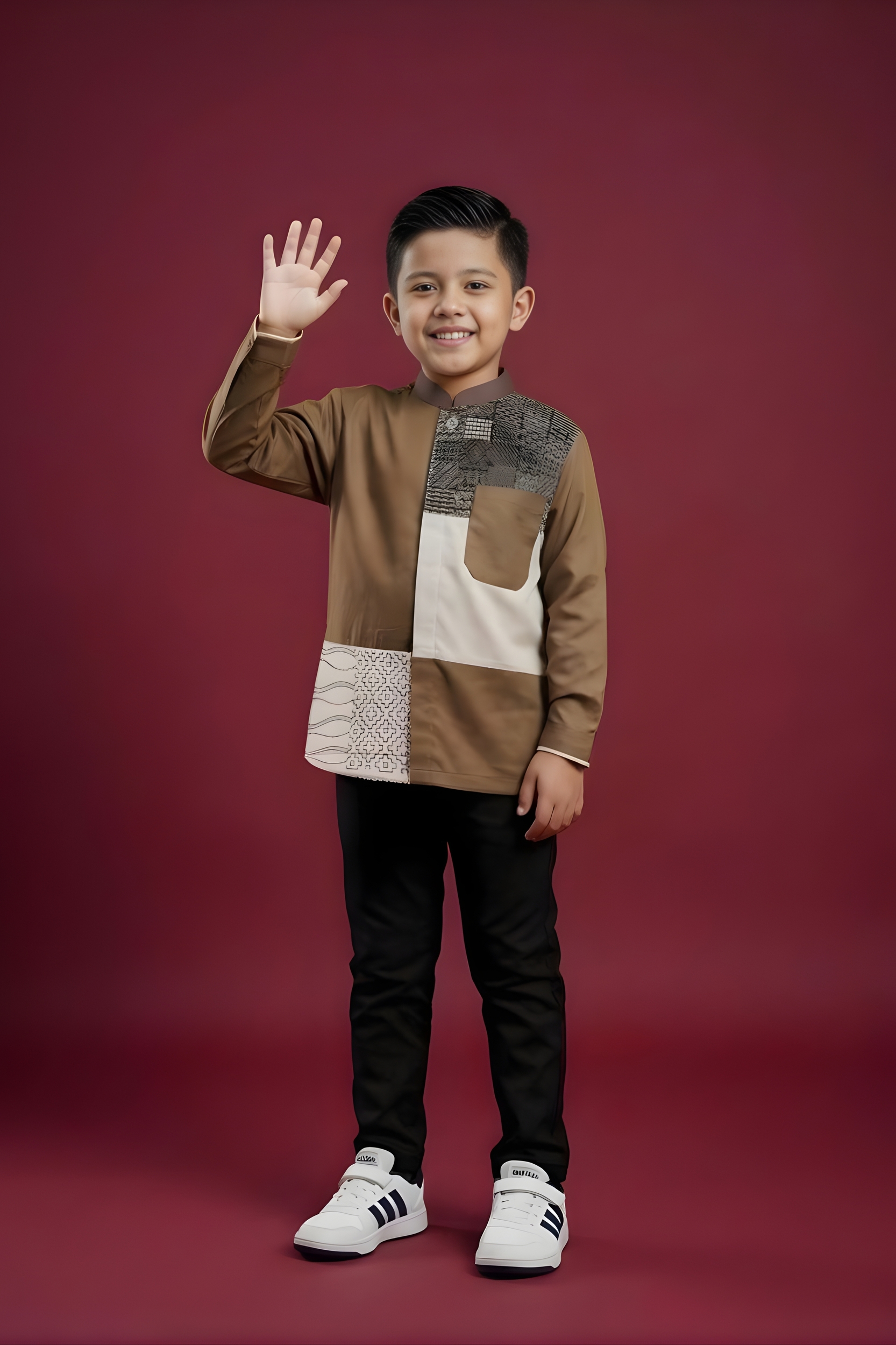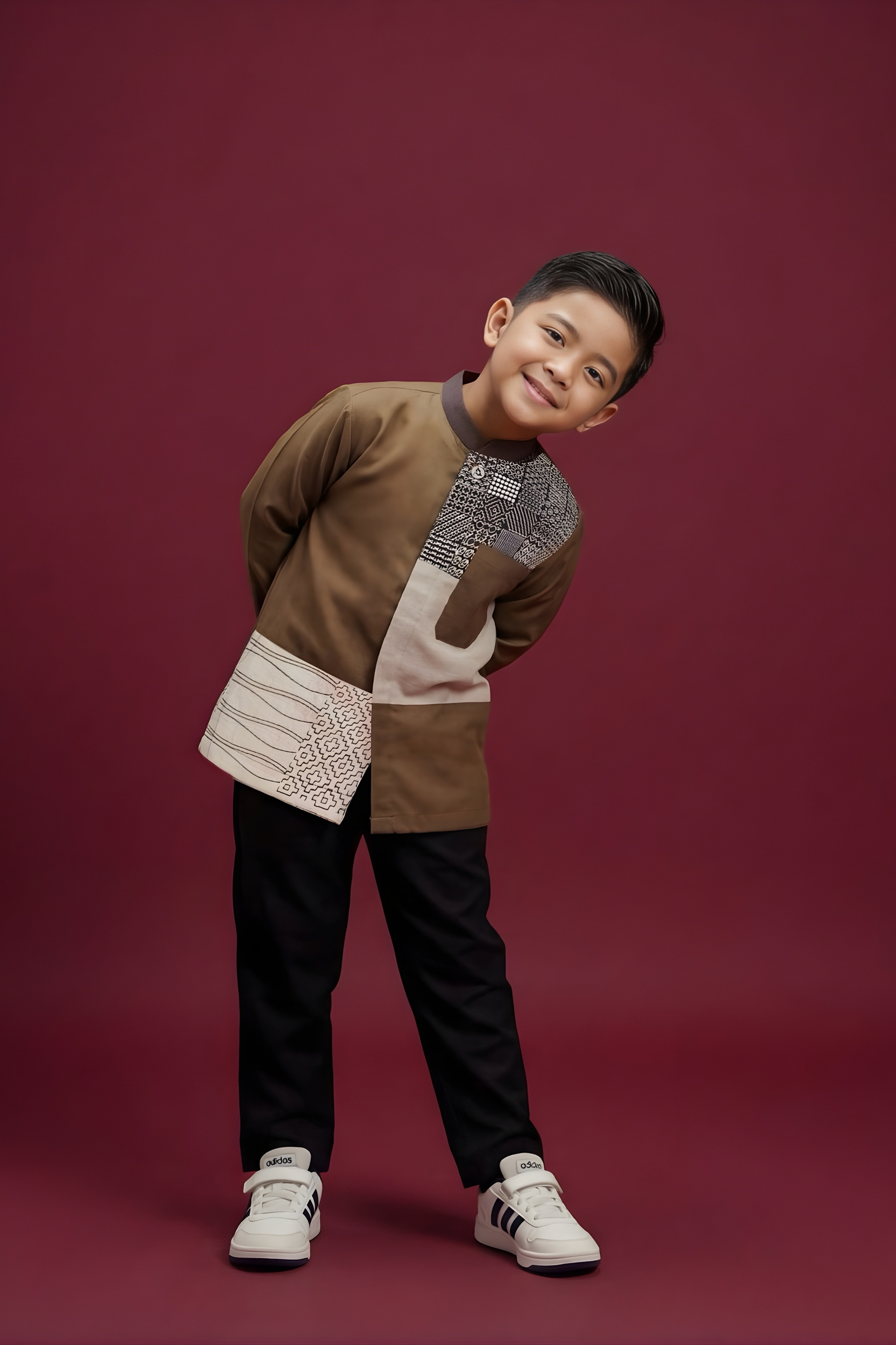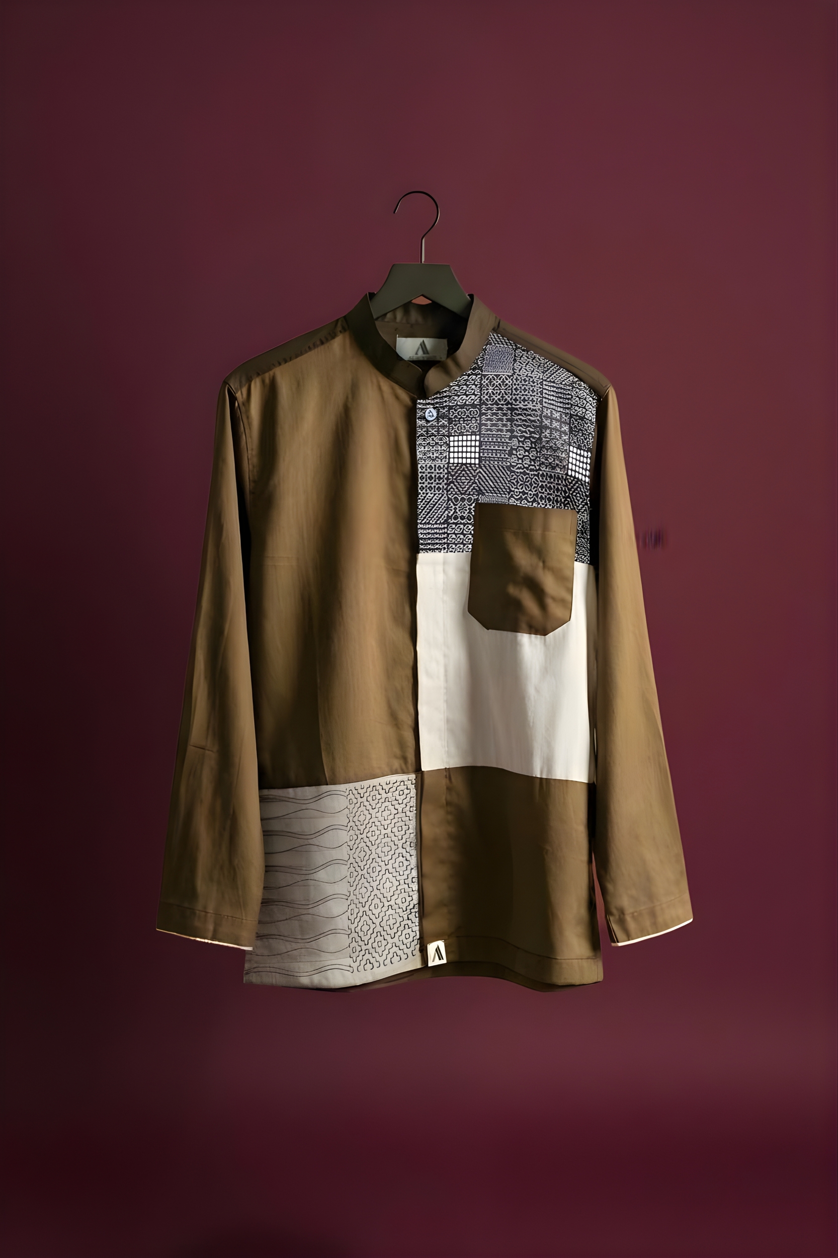 Kerah : * Kerah Mandarin * Kombinasi bahan katun Marocco Coffee pada bagian kerah